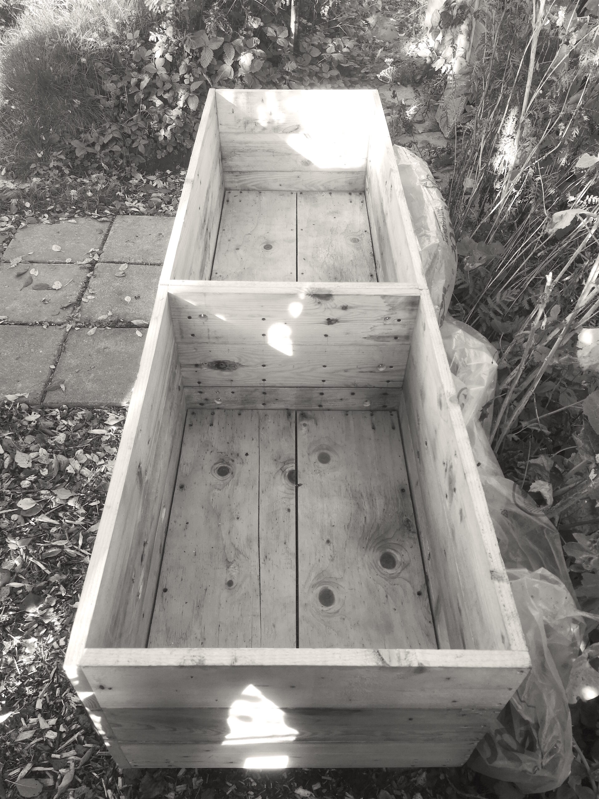 The primary concept is to source grade a euro pallets and dismantle into separate components. Two of the four pallet required equals 3 front sections and 3 back sections and or 6 boards per pallet. 3 boards @ 1200mm and 3 boards @ 800mm. Pallet three and four equal 12 boards @ 570mm (1200/2=600mm +/- 3 mm for sizing) the sides of each section and or 4 boards per section x 3 sections. 4 plywood floor boards (2 boards per box) for easy installation as well for expansion/contraction.